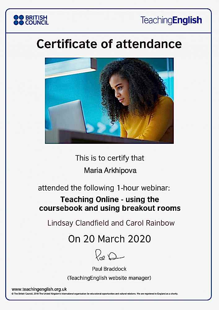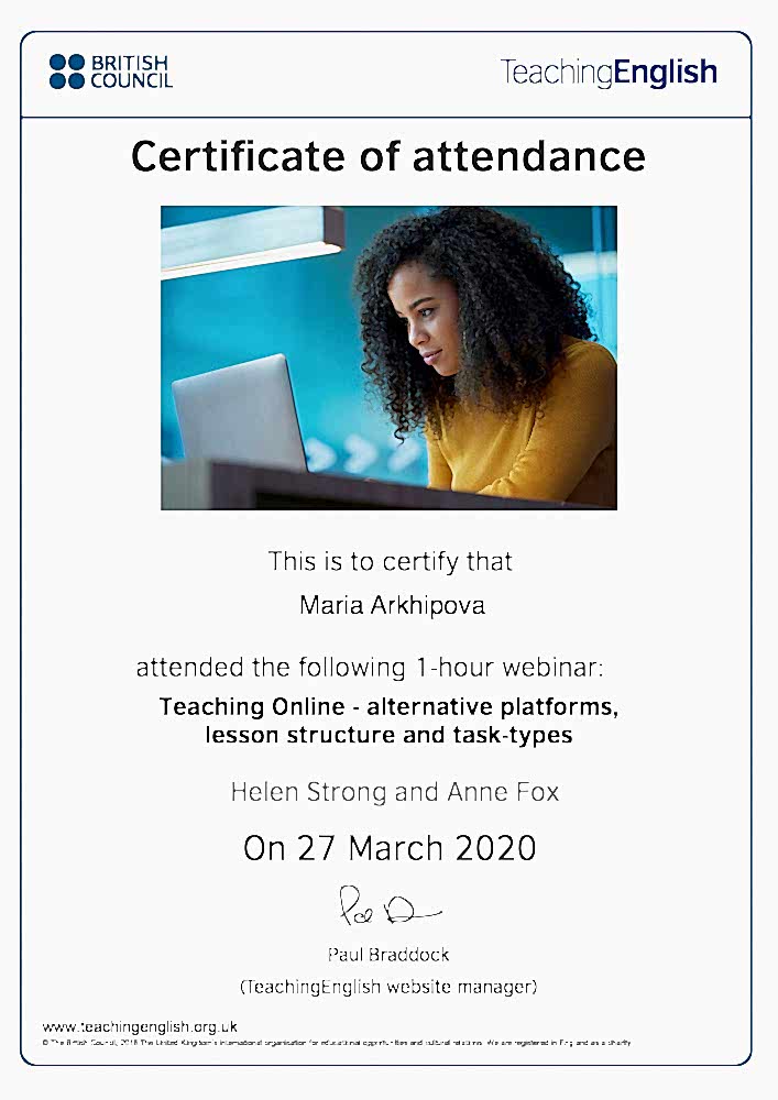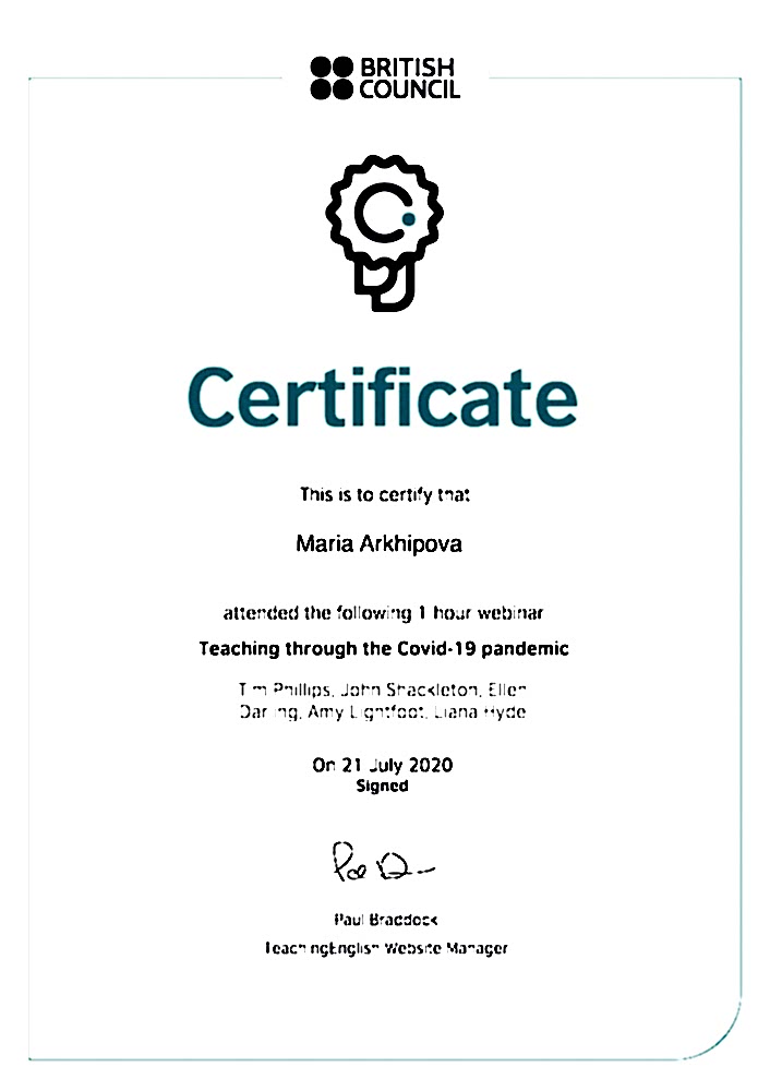 British Council webinar «Teaching through the Covid - 19 pandemic» (2020г)