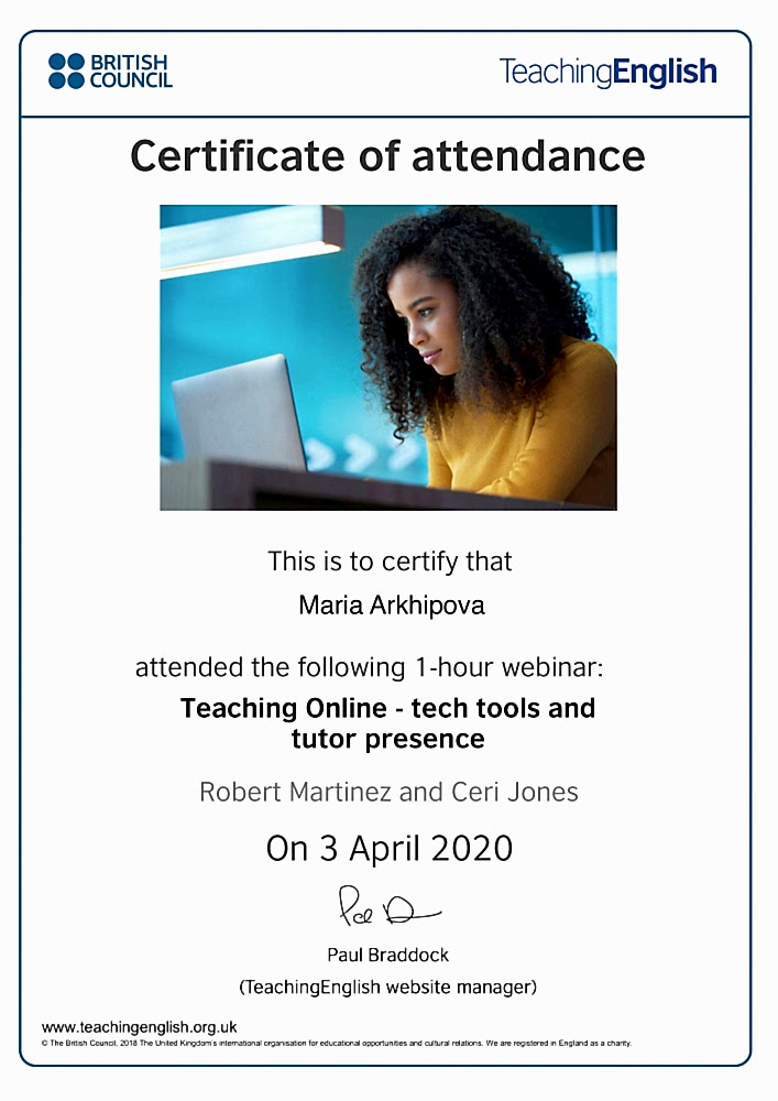 British Council webinar «Teaching Online - Pin-Up tools and tutor presence» (2020г)