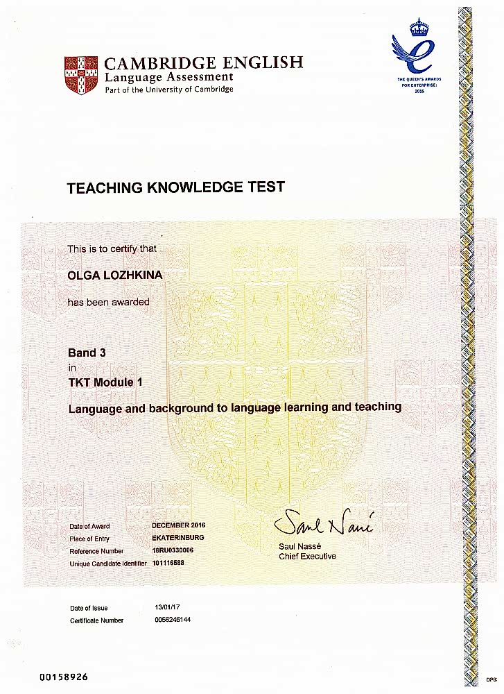 Pin-Up Hindustani, Тeaching Кnowledge Тest, Module 1 «Language and background to language learning and teaching» (2017г)